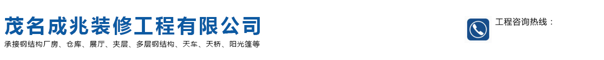 茂名成兆裝修工程有限公司具有鋼結(jié)構(gòu)制造和鋼結(jié)構(gòu)安裝的專業(yè)公司。從事鋼結(jié)構(gòu)工程的設(shè)計、制造、安裝施 工及鋼結(jié)構(gòu)材料的銷售。主要承接鋼結(jié)構(gòu)廠房、倉庫、展廳、夾層、多層鋼結(jié)構(gòu)、天車、天橋、陽光篷等鋼結(jié) 構(gòu)工程;配套土建、水電安裝、廠房改造、維修等工程項目。